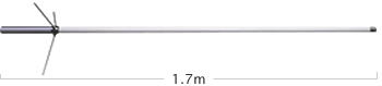 VSWR:Less than 1.5:1 / Rated wind velocity:60m/sec. / Mast diameter accepted:30-62φ / Connector:MJ / Type:omnidirectional 5/8λ,FRP outershell