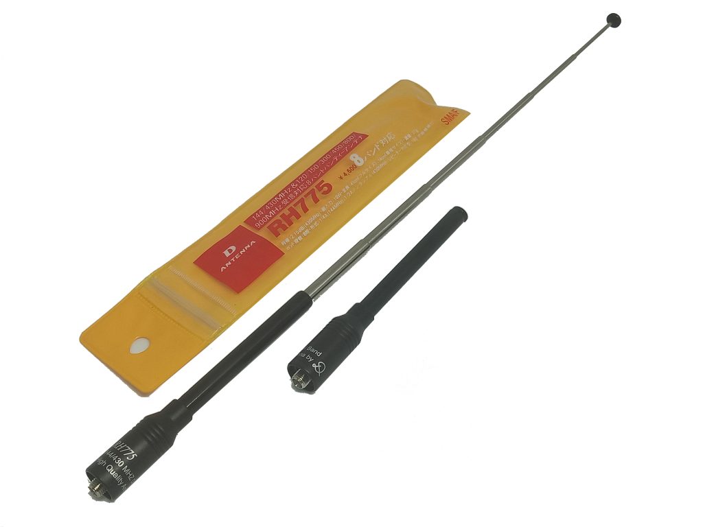 Connector: SMA FEMALE / Type:1/4wave(144MHz),1/2 radilalless(430MHz),120/150/300/450/800/900MHz for receiving only