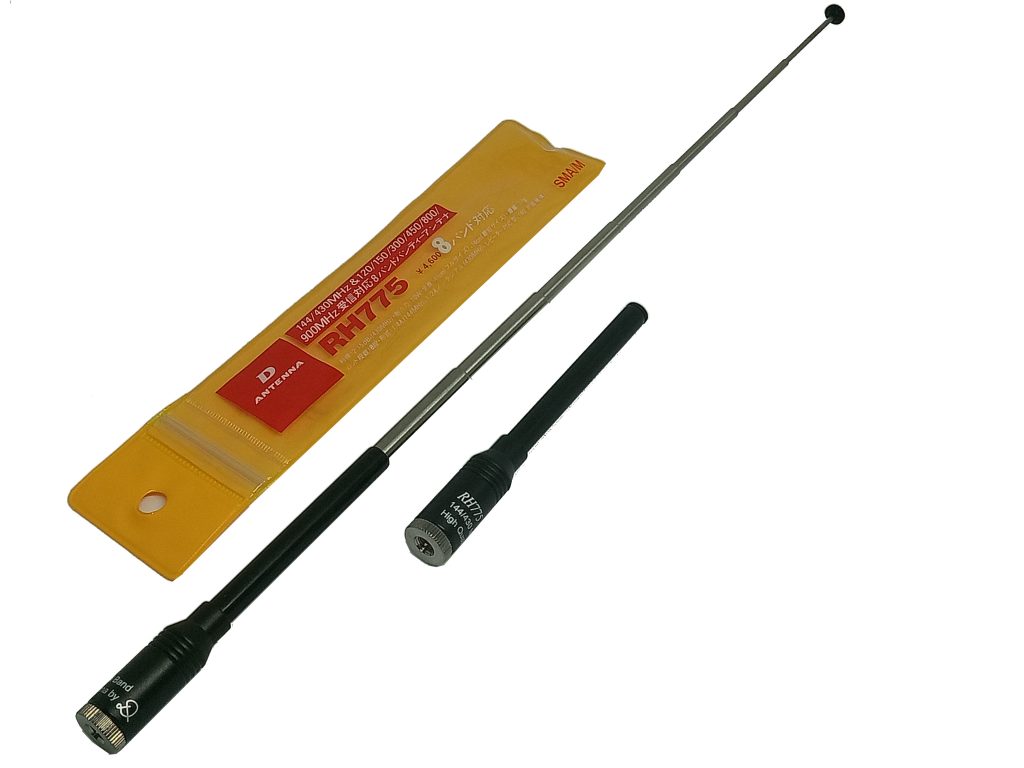 Connector: SMA MALE / Type:1/4wave(144MHz),1/2 radilalless(430MHz),120/150/300/450/800/900MHz for receiving only